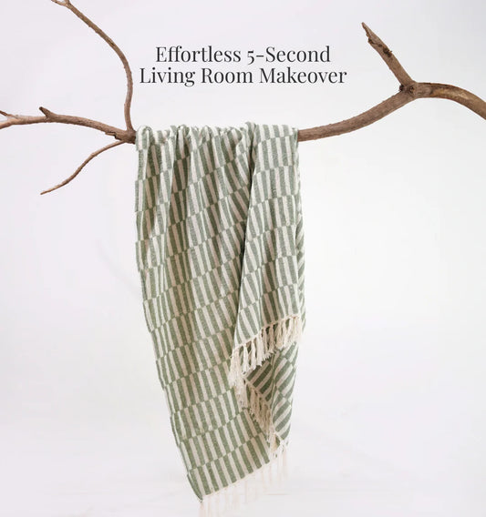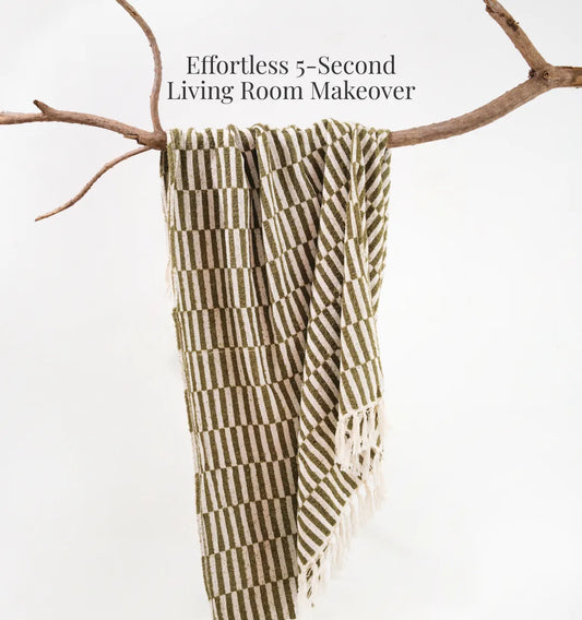 Cloudy Sofa Blanket - Beige Sage Checkered