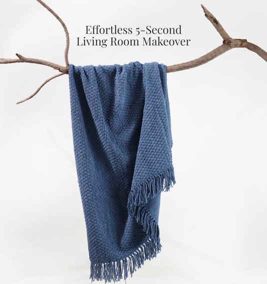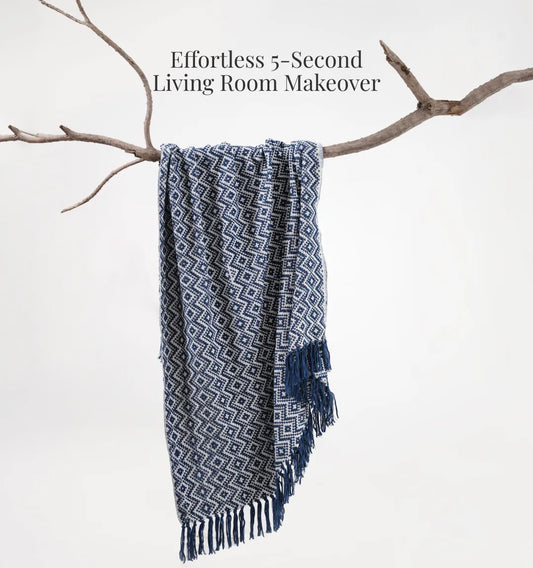 Cloudy Sofa Blanket - Navy Vanilla Lattice
