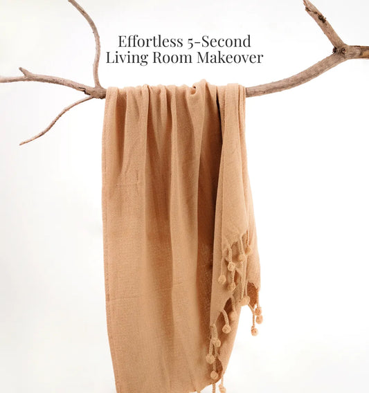 Cloudy Sofa Blanket - Beige Bliss Pom Pom