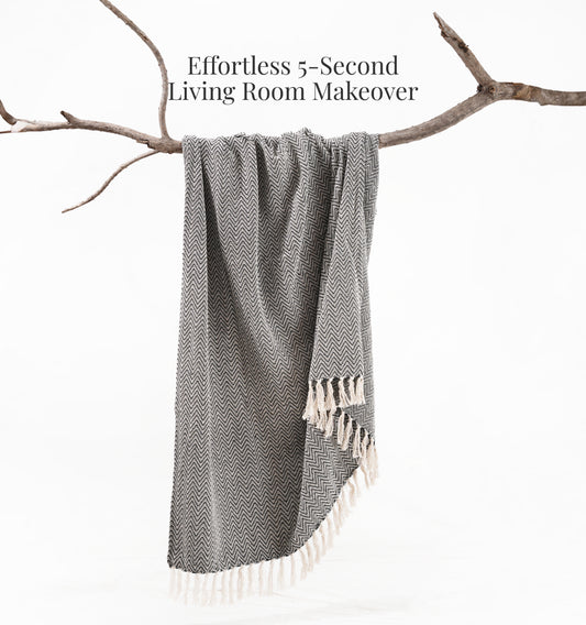 Cloudy Sofa Blanket - Charcoal Mist Zigzag