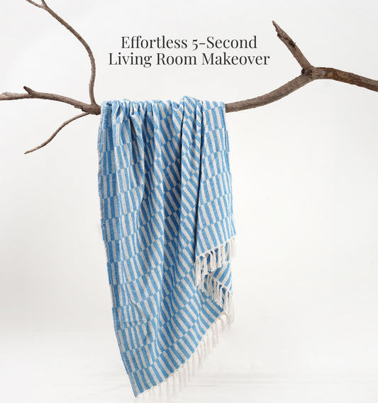 Cloudy Sofa Blanket - Blue Ash Zigzag