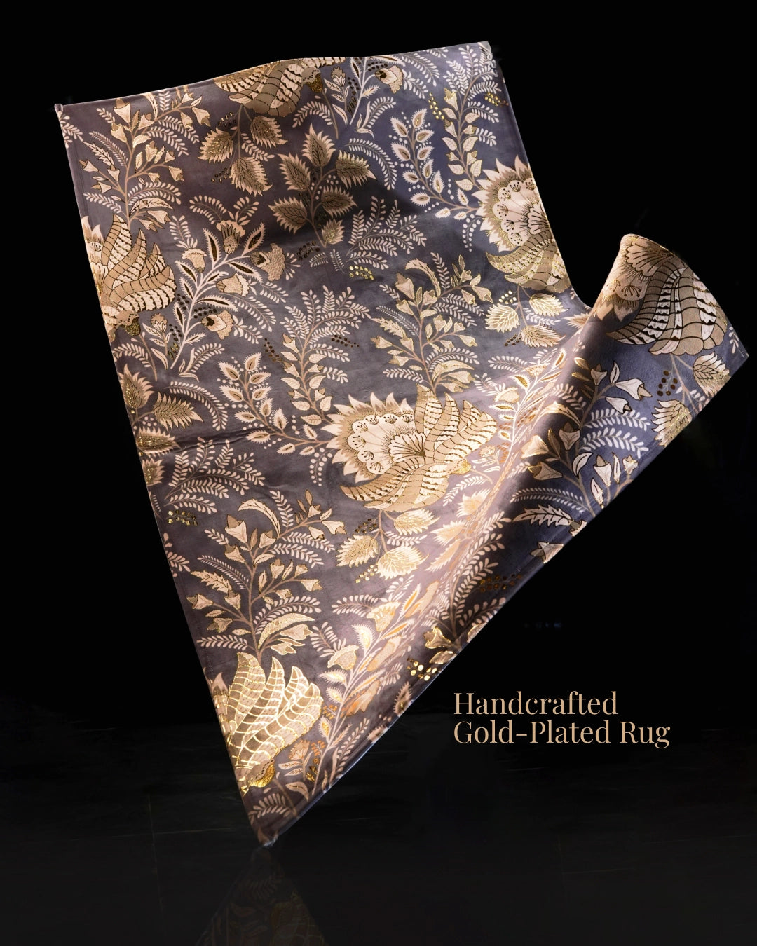 -Bring home opulent serenity with The Golden Bloom Rug — a lush tapestry of foliage and blooms, enriched with golden accents that shimmer like sunlight through a royal canopy.